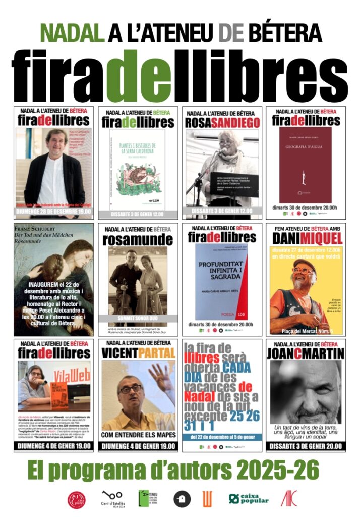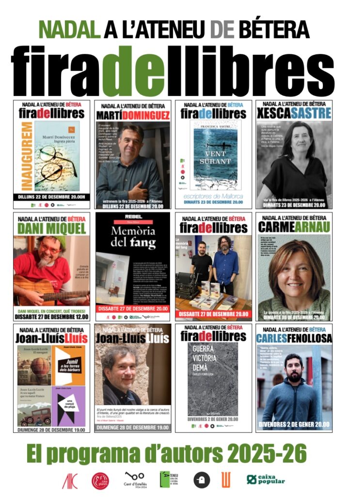 Ara fem vacances. Tenim la fira tancada, dos dies de repòs, de balanç dels dos dies, d’enllestir el sopar, el dinar els llevants i els entrants de tantes menges. Hem perdut una mica l’hàbit de la colla, de la Nit de Nadal a Bétera. Sembla que ens envaeix també la penicil·lina contra els bons costums mediterranis: a Bétera mai no se sopava en família la nit de Nadal. Què hi farem! Vam obrir un parell d’hores la fira el mateix 24, i encara vam vendre uns quants llibres. El segon dia no va ser el primer dia, això ja era evident, però el segon dia es va arreglar de públic. Vam tenir cirereta musical, perquè Comboi Mediterrani va interpretar una jota marinera mallorquina que ens va deixar mocats. Després Rosa Dasí va fer la presentació de Vent Surant, i també va agrair que la fira hagués fet aquesta aposta per les novel·les que recuperen la memòria històrica i trenquen la invisibilitat patida durant anys i panys. Jo llegia alguns passatges de la novel·la que trobava més literaris, de literatura de lo alto, Rosa explicava la república i la guerra i el que vingué encara pitjor, després, va parlar d’Antoni Mateu, batlle d’Inca, però també del batlle de Sagunt i del batlle de Bétera, tots tres afusellats, assassinats amb judicis falsos, amb proves falses, i Xesca, l’autora del llibre, gairebé sense veu, va dir que havia viscut la millor presentació sens dubte, entre els valencians, a Bétera.