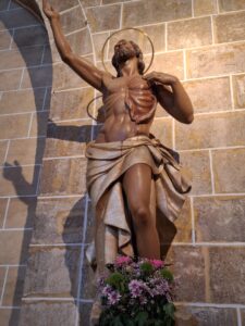 Mentre em contava tot allò no em llevava del cap la imatge del taulell devocional que hi ha al Ravalet del meu poble (carrer de San Bartolomé quan jo era xiquet), ja que en la iconografia cristiana és habitual de representar el sant amb un ganivet.