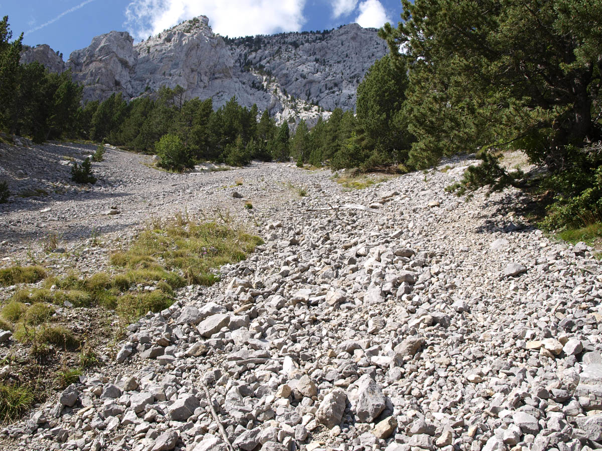 El nostre objectiu era força més modest, ens conformàvem amb arribar al cim del Pollegó Superior per la via normal de la canal del Verdet. El desconeixement del terreny i la inexperiència, però, van fer que acabéssim pujant penosament per la tartera de la canal central del Pedraforca…