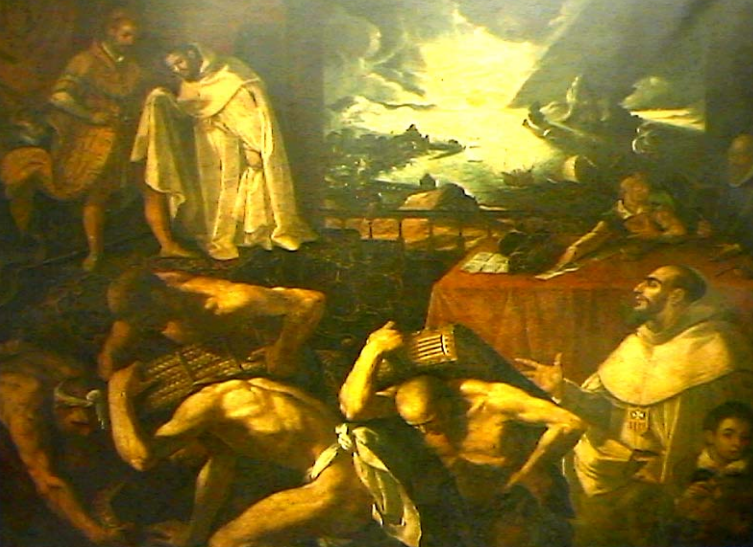 A la façana, com a Lima, hi havia quatre capelletes, però en aquest cas estaven buides. En demanar explicacions, la guia em va respondre que un terratrèmol a mitjans del s. XIX les va destruir, però que representaven les mateixes figures de la basílica de Lima. Confirmava així que Jaume I, acompanyava els sants mercedaris. Per afegitó, en el claustre del convent, entre les diverses pintures que explicaven la fundació de l’orde de la Mercè, a més d’un dels olis apareixia la figura de Jaume I. Un d’ells, Linajes y santidad en la casa real de Aragón, obra de Basilio Santa Cruz, era prou explícit per atribuir la condició de sant al rei en Jaume3. Calia indagar per trobar una explicació de tot plegat.
