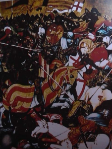 4 Són dotzenes i dotzenes els gravats i els olis localitzats que, escampats arreu del món, mostren Jaume I en diversos episodis: l’aparició de la Mercè, la de Sant Jordi al seu costat a la batalla, la del descobriment de la Mare de Déu del Puig… (vg. a l’annex alguns exemples)