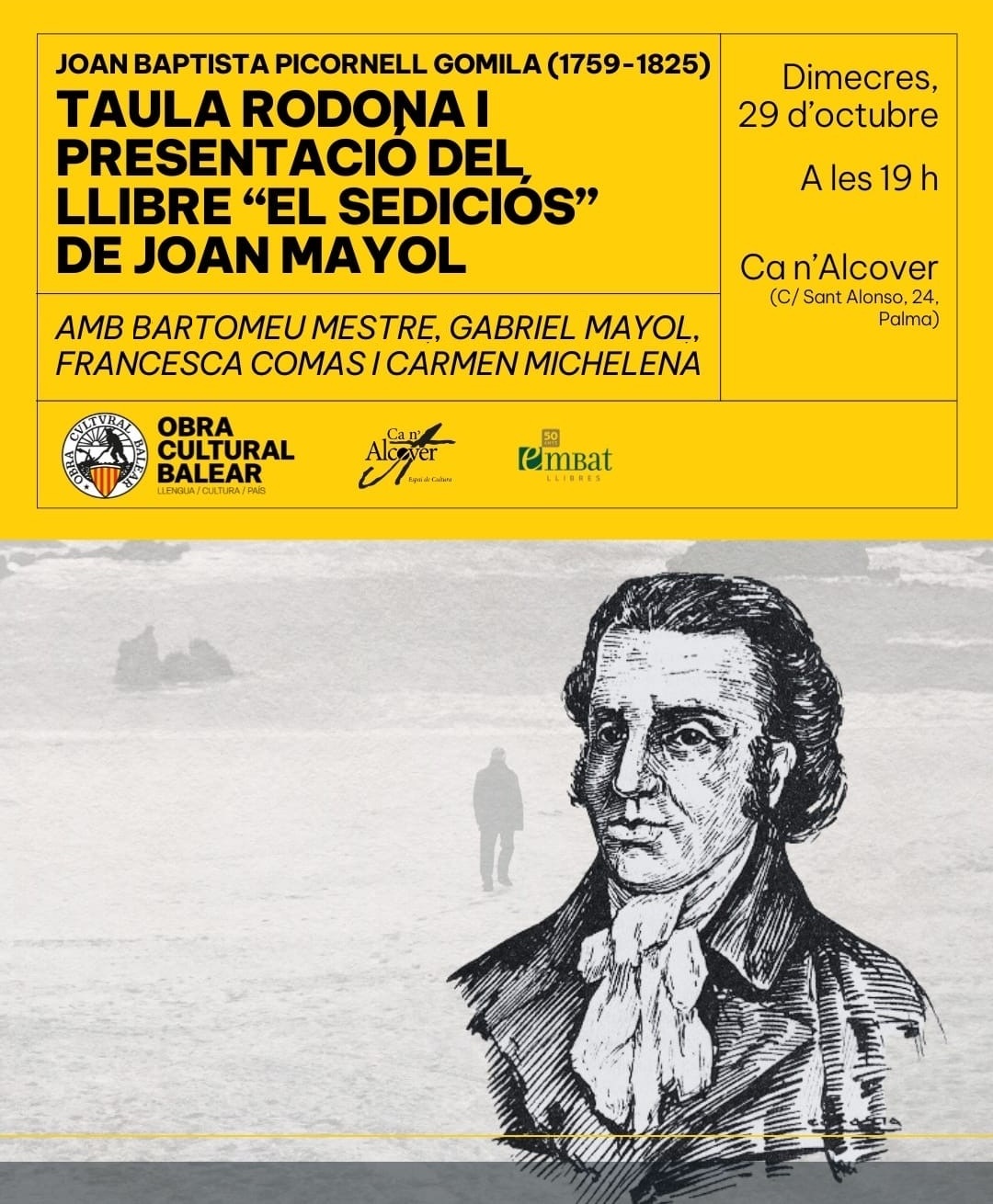 Feia comptes escriure un article original per animar la lectura d’aquesta novel·la, però una allau de feines sobrevingudes diferirien molts de mesos l’escomesa d’un llibre que ja s’ha presentat. Per tal de no perdre l’oportunitat de reiterar la recomanació, m’he decidit a penjar el pròleg que vaig fer, amb la dificultat d’evitar qualsevol espòiler per tal de no destapar cap de les aventures i desventures de Joan Baptista Marià Picornell i Gomila (1759-1825), el revolucionari mallorquí, el sediciós, que Joan Mayol ha tengut l’esma i la traça d’evocar i rescatar de l’oblit. Una novel·la biogràfica per aprendre història. Benhaja!