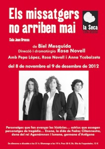 He pres partit per una arte povera de la paraula viva que vol fer sentir a l’espectador, sentir literalment i amb tots els sentits, unes contarelles que fugen del naturalisme trivial per convertir-se en les dreceres cap a unes formes noves que facin, o intentin fer, evolucionar la nostra mirada, el nostre punt de vista, a fi de revelar-nos l’invisible que succeeix fora de l’enquadrament de l’escenari a la italiana, fora de camp. L’espectador no assisteix a una peça acabada, sinó que se’l convida a participar en un assaig, en el risc del muntatge, cal que no se senti en el teatre sinó dins el teatre, cal que la polifonia de les músiques verbals, corporals i sonores l’arrossegui per amors i dols, desitjos i enjòlits, secrets i terrors, sacrificis i voluptuositats, assassinats i tendreses, la inacabable estela d’unes vides dels nostres temps d’unes heroïnes clàssiques, en aquesta descripció de la fragilitat humana sense afectació i sense pathos, com la de cadascun de nosaltres.