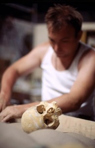 [Foto: Miquel Barceló a Vietri sul Mare l’any 1973 fent la pell ceràmica de la capella de la Seu de Mallorca d’Agustí Torres]