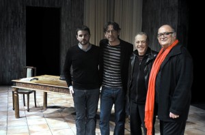 [Foto de Carles Domènec del passat dia 13 de desembre al Teatre Lliure quan en Carles Molinet i aquest plagueter férem les Cartes Villalonga-Porcel dirigits per Pau Carrió. Aquí ens acompanya l’amic i director del Lliure, Lluís Pascual.]