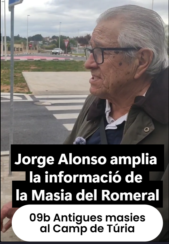 Jorge Alonso, després de la explicació d’Amparo Doménech al vídeo anterior (el 09 Jorge de les Antigues masies al Camp de Túria), puntualitza que aquest edifici va ser requisat durant la Guerra del 1936-39 i ocupat pel general republicà Miaja, responsable de la construcció de la línia de defensa “Puig-Carasols”…