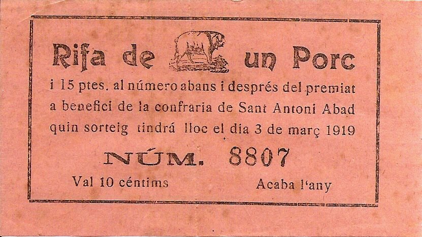 La tradicional rifa del Porc es va mantenir fins els anys 1970. L’Església festejava la diada amb la benedicció dels animals que duien pagesos, els industrials i la mainada a la sortida de missa major.