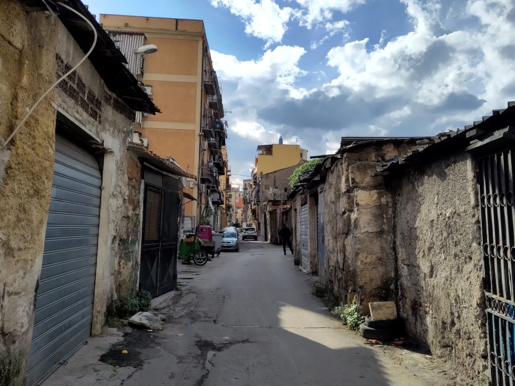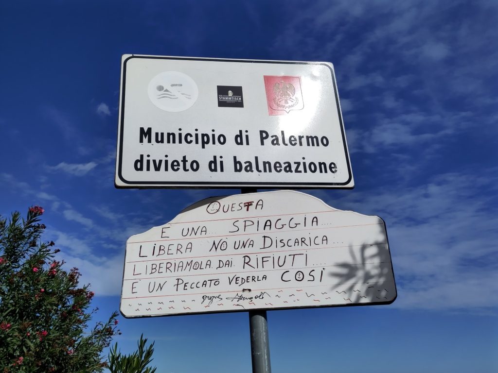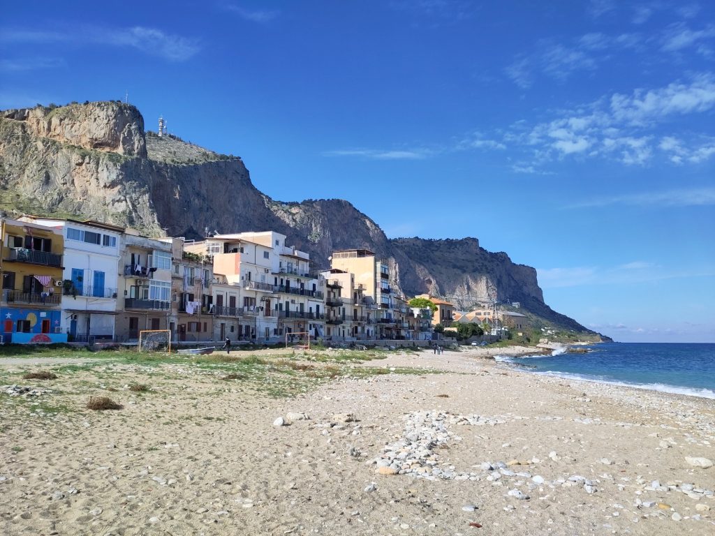 La platja de l’Arenella és als afores de la ciutat i en tornar al centre de Palerm passem pel costat del Teatro Massimo. Faig unes fotos a les escales, que són el lloc on Francis Ford Coppola va rodar l’escena en què es carreguen la filla del Michael Corleone a Il Padrino III. Avui al teatre hi havia un acte per a instituts amb tot de cartells antimàfia pertot arreu; hi estaven representats els herois Falcone i Borsellino.