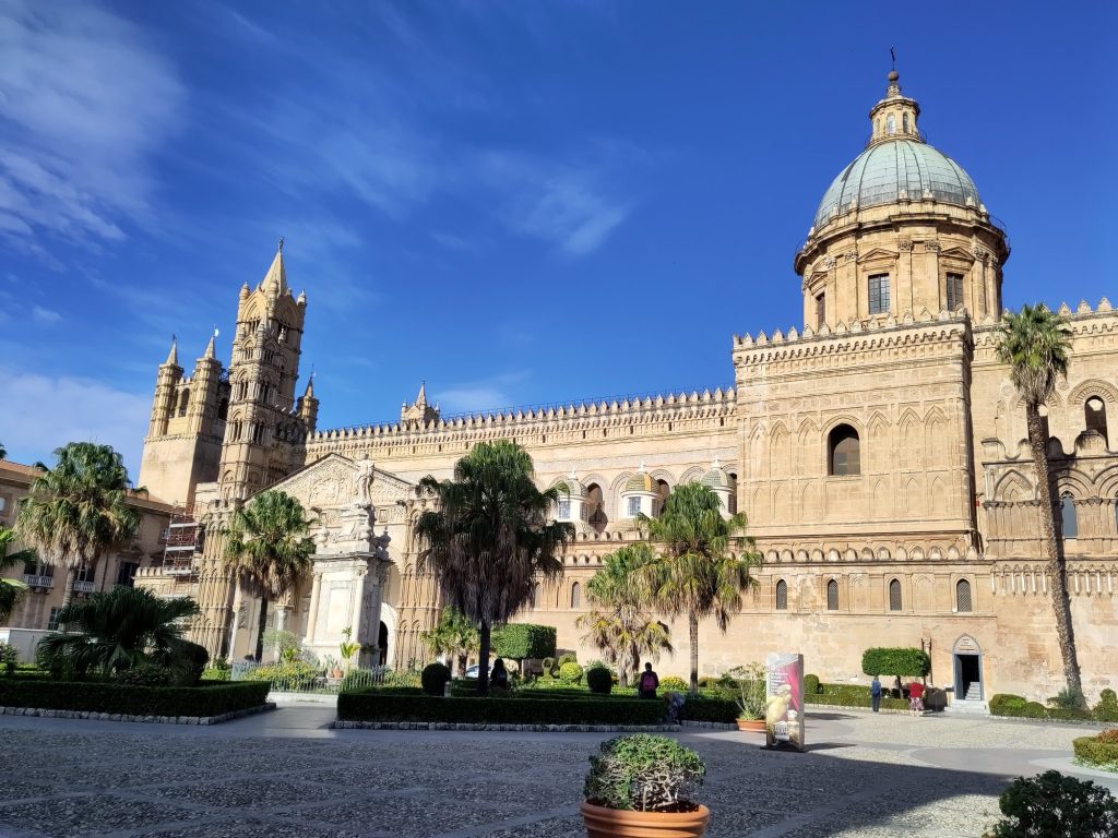 Que en Pau vol veure mercats al carrer? Doncs anem a veure mercats al carrer: Ballarò, Vucciria i després il mercato del Capo. Ens fem un tip de caminar, la veritat, però jo també ho trobo interessant. Tot passejant passem per alguns indrets que també surten als catàlegs turístics i donen el toc highcult que no sol veure’s als mercats: la capella Palatina, l’església de la Martorana i la Catedral, tres monuments que es veu que són el cim de l’estil artístic àrab-normand.