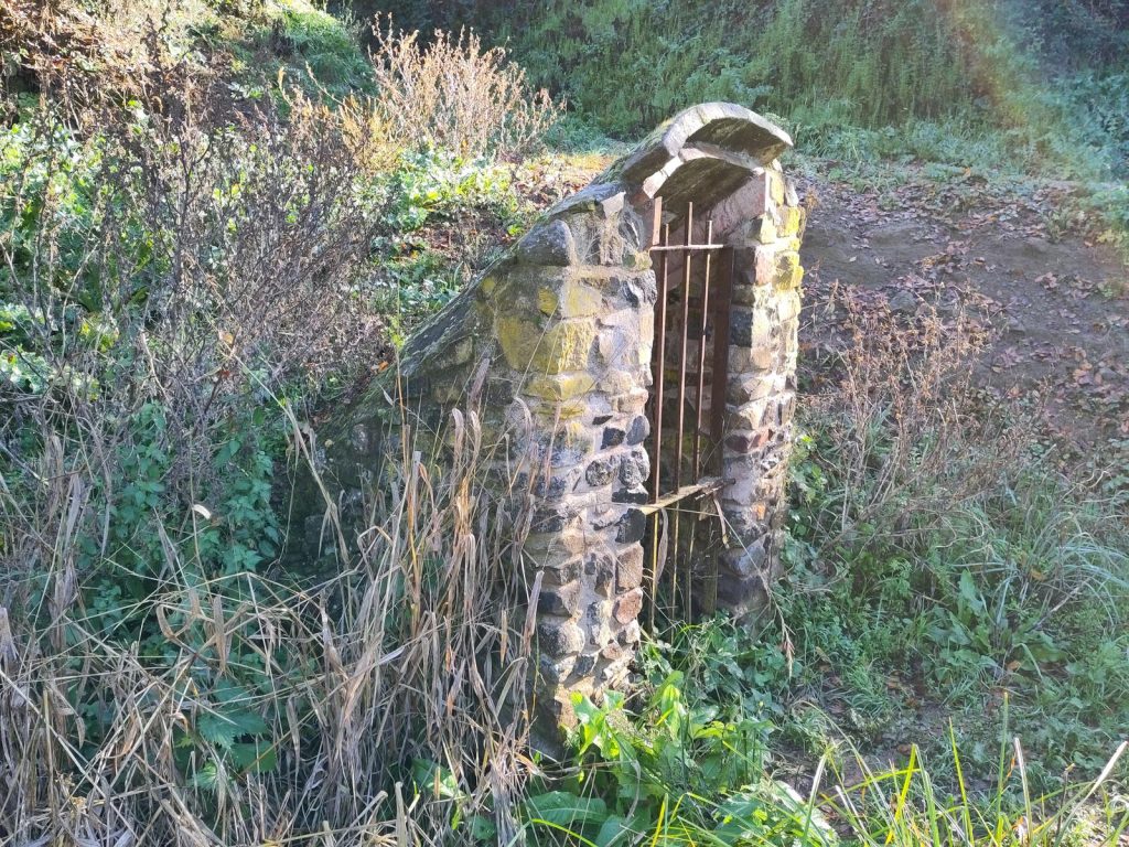 Una descoberta nova: la mina que fa no-sé-quants anys la gent de les masies del voltant van foradar per treure l’aigua de l’interior del cràter, assecar les terres i guanyar terreny de cultiu. Encara no l’havia vista mai i aquest cop… hi he estat molt a prop. La veritat és que tampoc no l’hem trobada ben bé. La imatge correspon a l’entrada del túnel de servei que també van construir però no pas a la sortida de l’aigua de la mina, que segons les explicacions que hem trobat ha de ser molt a prop però hem estat incapaços de localitzar.