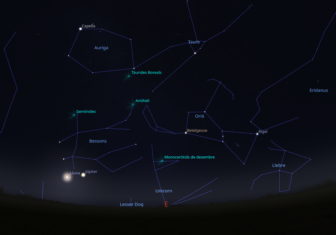 Entrem finalment en l’últim mes de l’any. Un any plujós i calorós i que, en general, ens ha deixat poques nits sense núvols. Aquest desembre presenta l’important pluja d’estels dels Gemínids, una superlluna, i, finalment la possibilitat d’observar dos planetes gegants al cel de la primera part de la nit. I també gaudirem del canvi d’estació el 21 de desembre per a entrar en l’hivern.