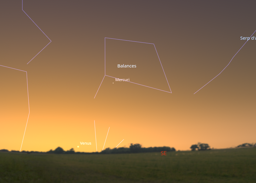 Mercuri passarà el mes en el cel previ a l’alba. Durant una hora abans de l’eixida del sol el podrem veure prop de l’horitzó sud-est. La matinada del 7 de desembre Mercuri aconseguirà situar-se en el seu punt més alt en la seua aparició matutina, cap a la constel·lació de Lliura. Poques hores després el planeta es trobarà en la seua major elongació a l’oest, l’anomenada màxima elongació occidental. Mercuri aconsegueix la seua major separació del Sol, en la seua aparició matutina.
