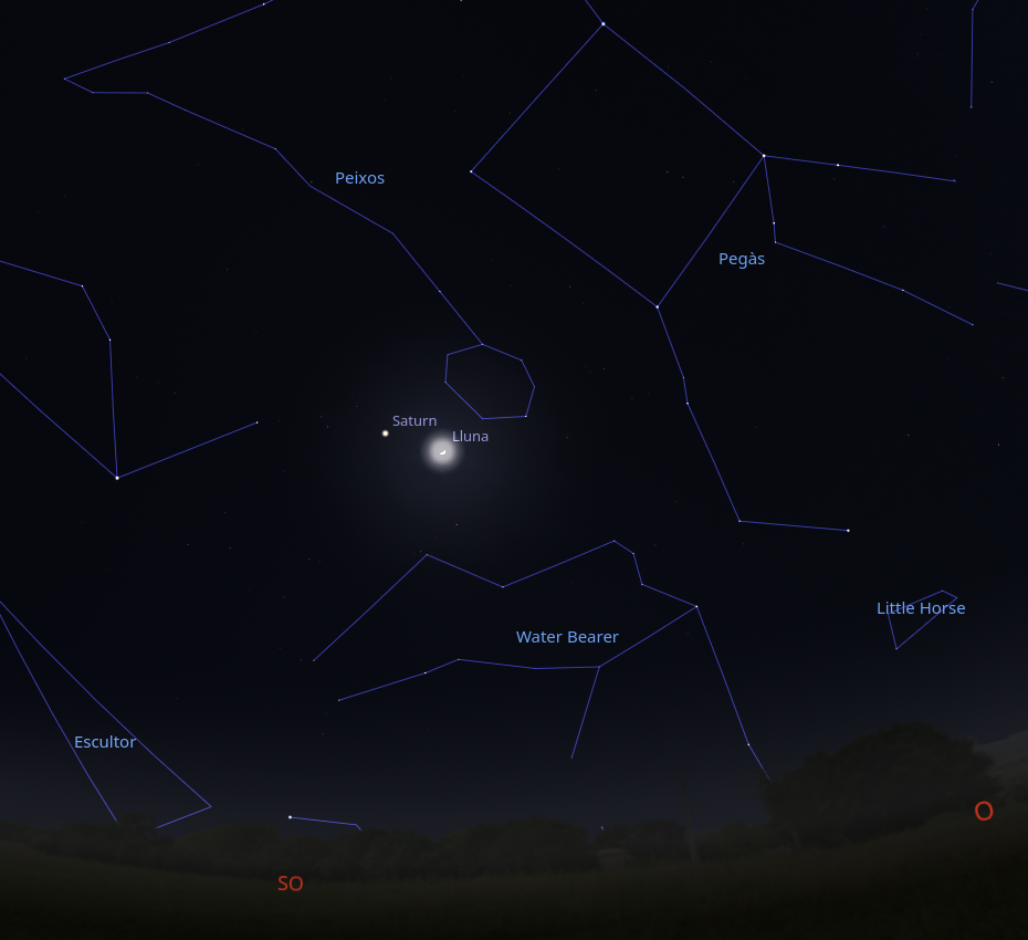 Els planetes interessants seran els gegants. Saturn ja fa mesos que senyoreja el cel en la constel·lació d’Aquari mentre que Júpiter ja guaita per l’horitzó est a partir de les 21 h.