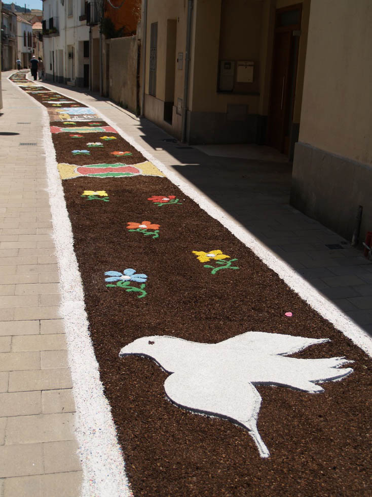 Sorra, graves, serradures o flors, éren els elements i materials més emprats en aquesta mostra d’artesania popular, elaborada en un temps rècord i com a tradició representativa de la festivitat del Corpus.