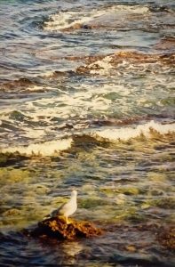 Per què vaig fer doncs aquesta foto? Senzillament, durant el còctel d’imatges possibles que oferien aquelles passejades, una gavina solitària s’havia posat sobre el tapís multicolor de roques i d’aigua transparent, com incitant al clic de la càmera, la qual evidentment no va tenir més remei que cedir a aquella desafiant provocació.