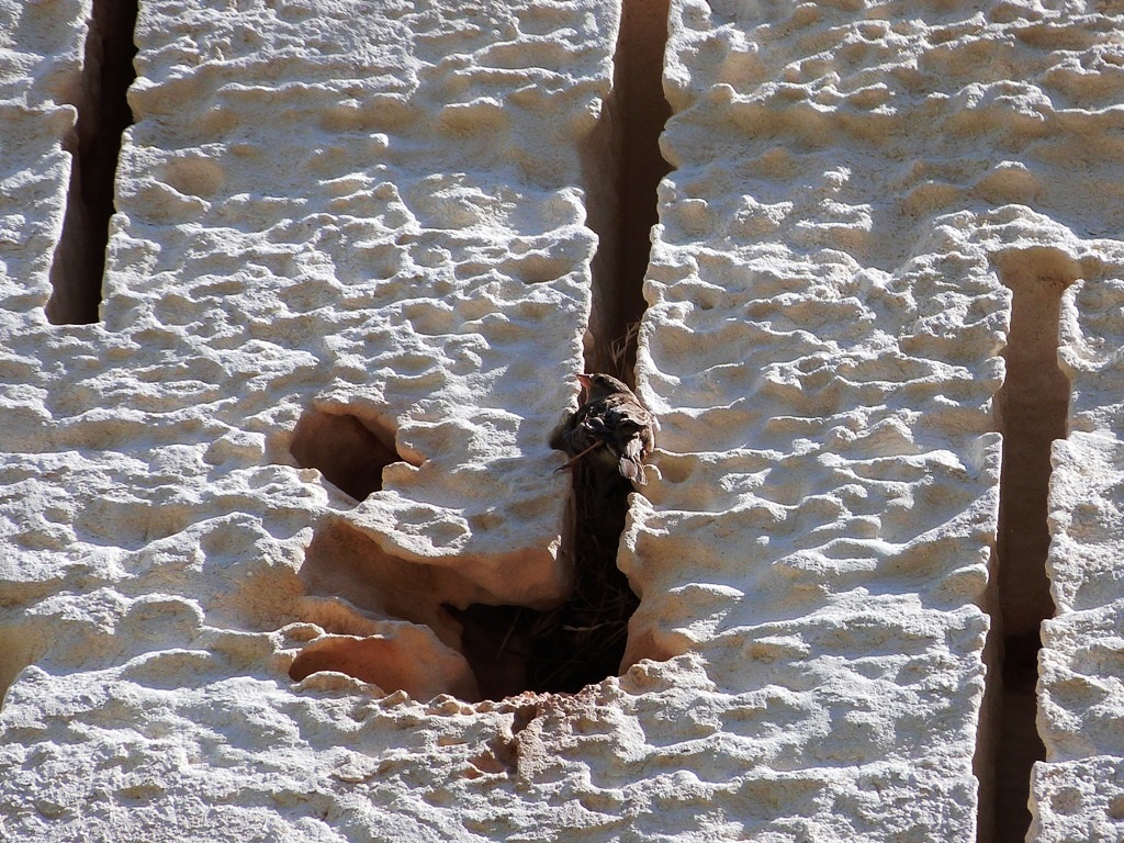 Els talls profunds deixats per la serra talladora a les pedreres de marès, ara en desús, fan possible que un pardalet ajudant-se amb el bec i ungles construeixi un segur habitacle per aixoplugar la descendència i així, desenes de diminutes coves són ràpidament habitades per cridaneres cries piuladores convulsives que transformen l’espai en un auditori sonor digne de gaudir-lo una bona estona ja sigui passejant, recolzades en un racó sonor estratègic, assegudes passant fulls de pàgina o, en última instància, fent allò tan sovint més reconfortant i enriquidor de badar, escoltar i no fer res, tot això pot passar fent un tom per la pedrera de Santa Ponça d’Alaior.