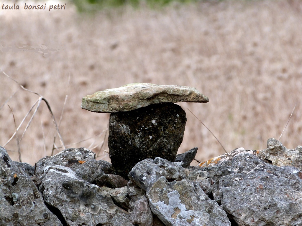 Ara, durant la tranquil·la època estacional, visitar els llocs és un plaer gairebé d’hedonistes solitaris que, sense l’enrenou d’altres, gaudeixen de qualsevol detall que aparegui pel camí com la presència -enregistrada a la imatge d’aquest apunt – de l’espontani homenatge a l’època talaiòtica que algun visitant d’estiu va deixar damunt de la paret seca…, ja se sap, entre tanta pedra traginada amunt i avall durant segles, el mimetisme s’apodera i algunes persones no se’n poden estar de deixar també la seva innocent, ocurrent i, inofensiva petja.