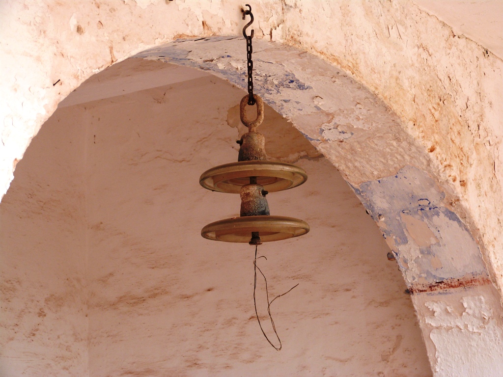 Dins la mig enrunada casa de camp, presidint el dalt d’una arcada, un enigmàtic adminicle encadenat penjava a plom. Amb l’ajuda de la solidesa del vell marès, sense tenir ni folla del que era, un cop més la frase de J.V. Foix, M’exalta el nou i m’enamora el vell, acredità l’estona de contemplació del misteriós estri.