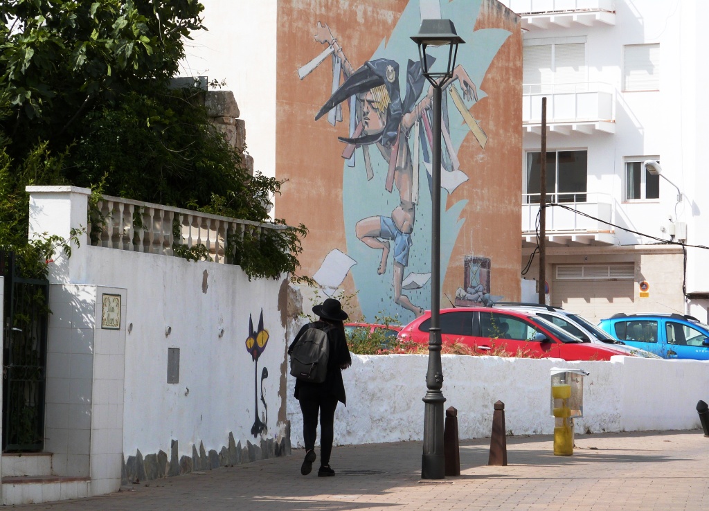 Els grafitis, agradin o no, no només amenitzen el camí sinó que també s’esdevenen decorats de fons d’un escenari urbà on de tant en tant passen els figurants a tall d’actors i a estones, només una persona, com un mim a manera de breu monòleg gestual, és l’encarregada d’interactuar amb la decoració interior.