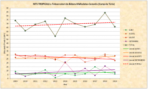 – Evolució anual de les nits tropicals en els darrers 11 anys.