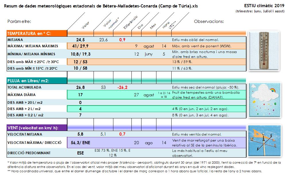 B) RESUM DE DADES DE L’ESTIU CLIMÀTIC DEL 2019:
