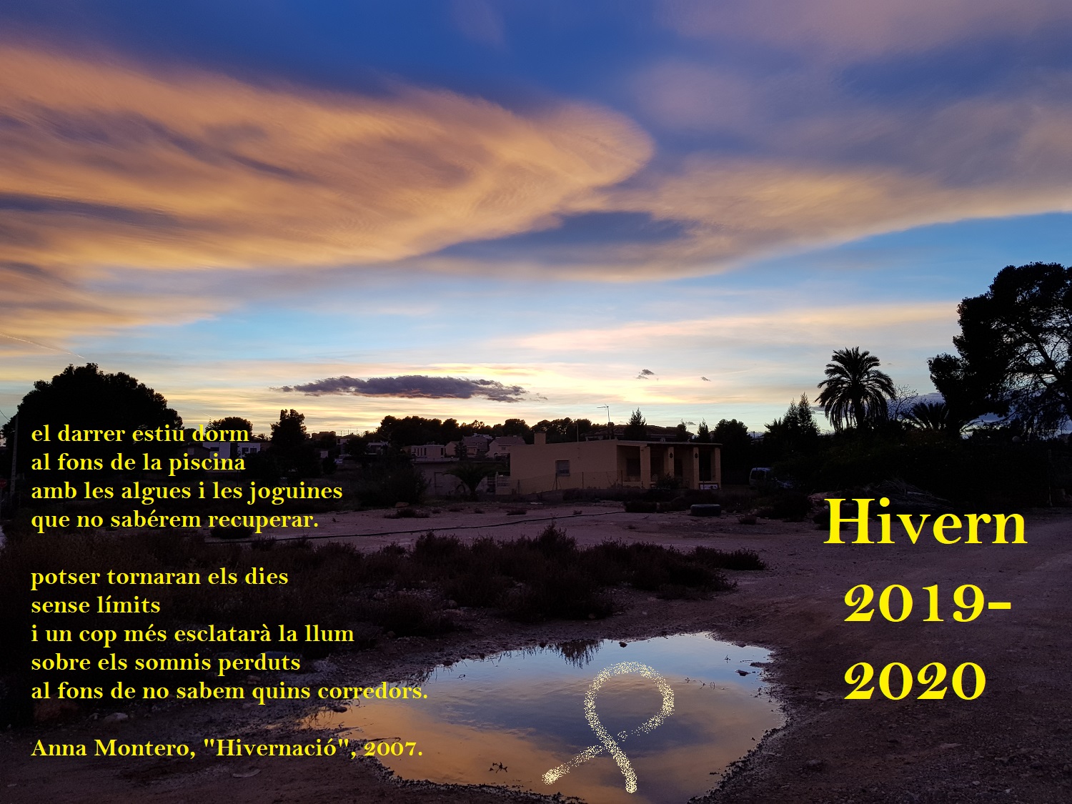 El desgovern d’aquest hivern del 2020 ens ha vingut per altra via, com a efecte col·lateral de la mundialització imposada pel neoliberalisme econòmic, que cerca beneficis privats per a una minoria sense importar-li massa arriscar el futur del planeta i de la humanitat sencera. L’acceleració dels intercanvis planetaris, transportant des de milers de kilòmetres productes sobrers per se o perquè en sabem fer millor ací i ens els han tret per la força, ens ha portat també la colonització per flora i fauna invasora, així com per malalties noves, amb efectes del tot devastadors per a l’hàbitat autòcton. Ara li ha tocat el torn a un virus prou més agressiu que la grip, que ens ha menat a prendre mesures excepcionals com l’aïllament de grat o per força. Entre el “virus” de la Corona i el nou coronavirus anem aviats! Que tinguem sort a eixir sans i estalvis d’aquesta crisi! Moltes gràcies al personal sanitari i voluntari per la seua tasca tan professional i solidària que hi estan portant a terme!