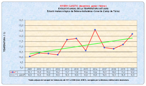 El podeu trobar al quadre-resum de dades meteorològiques més significatives, en aquest cas de l’hivern climàtic, que tot seguit us mostre i que inclou comentaris explicatius.