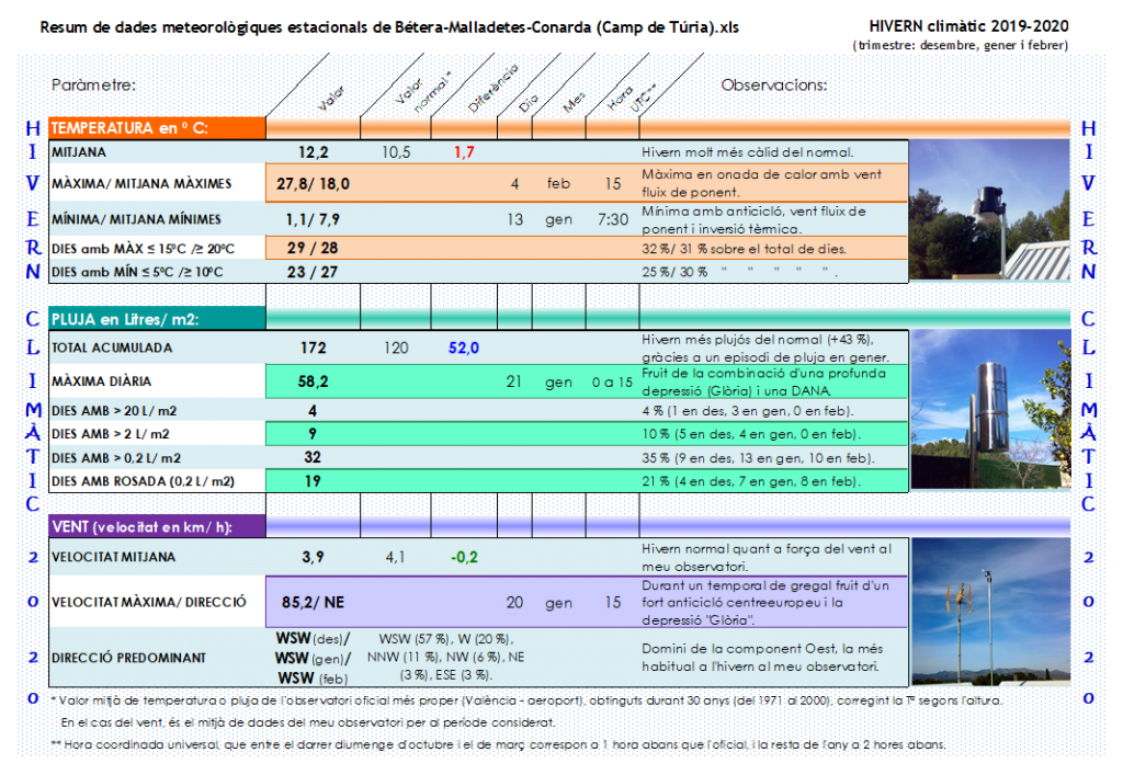 B) RESUM DE DADES DE L’HIVERN CLIMÀTIC DEL 2019-2020: