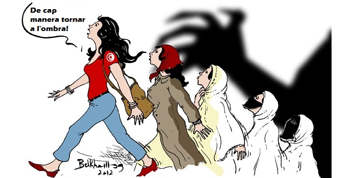 “Sí, ara mateix, com en una espiral retrògrada inesperada, passa el que no m’hauria imaginat mai quan als anys noranta escoltava el discurs d’aquell barbut enfurismat amb les dones, passa que l’islamisme penetra sense resistència entre les consciències del joves musulmans, sobretot entre les d’elles, i em deixa amb l’amarga sensació que tot allò que havíem guanyat s’ha perdut en un tres i no res.” (pàg. 55).