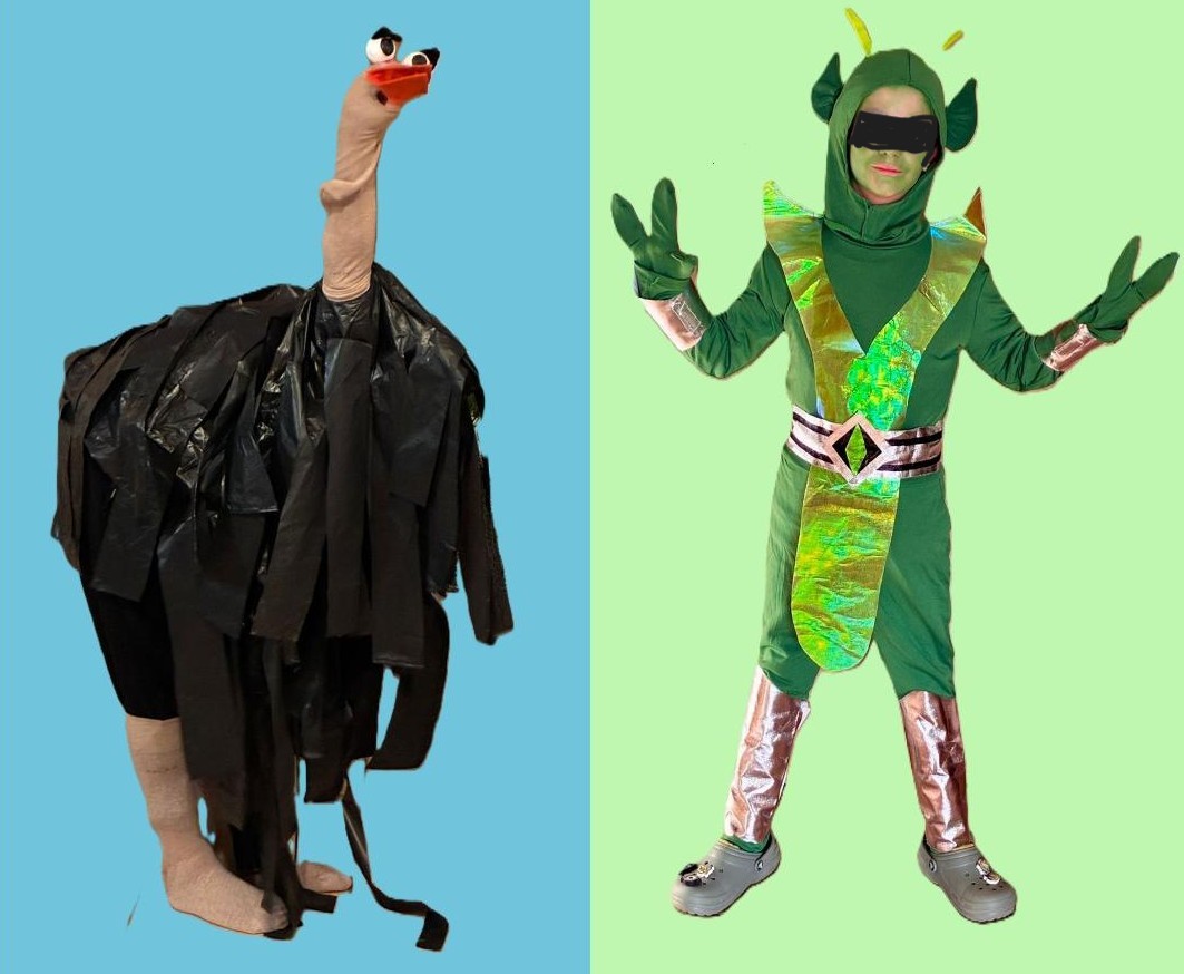 Als escolar, sobretot els d’infantil, primària i secundària, no els demanen si els agrada o no disfressar-se; ho han de fer perquè així consta en el pla d’estudis i per això és possible que el sentit de transgressió atribuït a la disfressa perdi consistència. Com sigui, el meu preceptor major s’ha disfressat avui d’estruç i el menor d’alienígena. Han complert a plena satisfacció el paper de la comèdia.