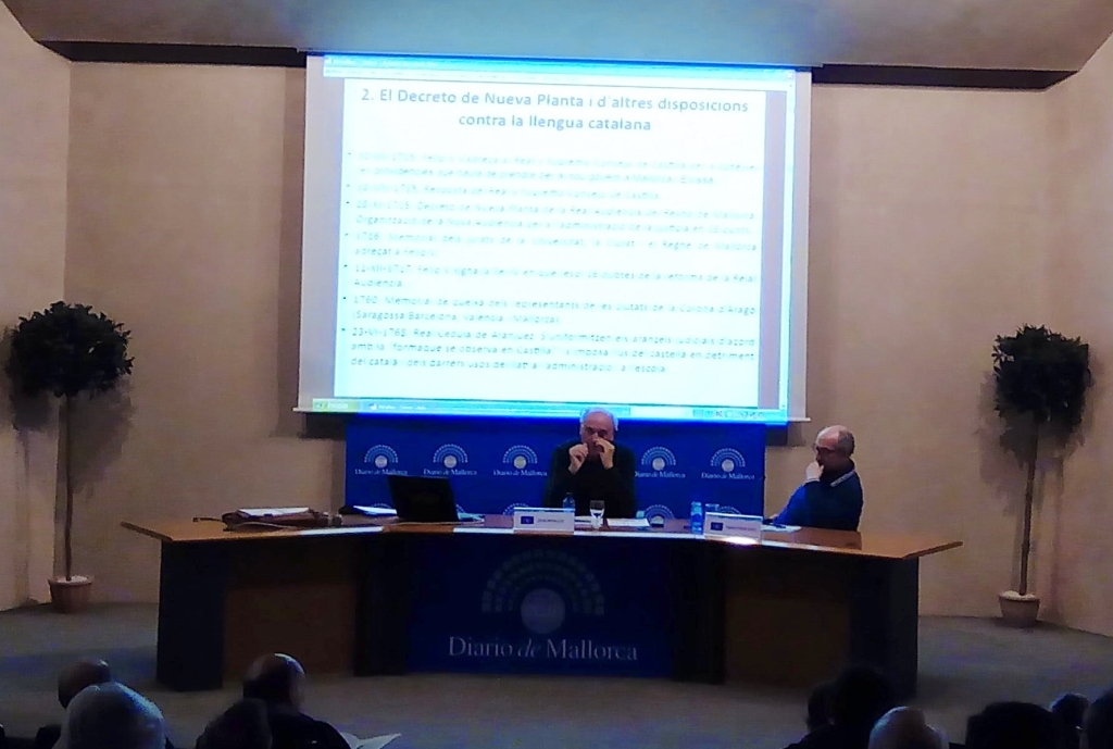 Segueixen les conferències al voltant del Tricentenari de la Guerra de Successió. Ahir, en el Club Diario de Mallorca, organitzada per la delegació de Palma de l’Institut d’Estudis Catalans i l’Obra Cultural Balear, i amb la col·laboració de l’empresa amfitriona i la Comissió Cívica del Tricentenari, el doctor Joan Miralles, parlà de “El Decreto de Nueva Planta i les mesures repressives contra la llengua catalana”.