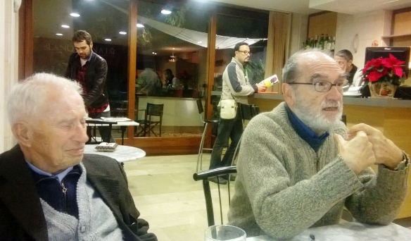 Instants abans de començar, en el bar canalcoverià que tan diligentment fa anar Antònia Fornès, vaig poder fruir de la conversa amb Garau, Soler i el professor Josep A. Grimalt. Parlàrem d’història, de l’espanyolisme que ens escanya, de la Bíblia i del seus llibres, i de sants, perquè el professor Grimalt ens va dir que tenia a punt d’impremta un llibre que parla d’ells. Dels llibres de la Bíblia en retraguérem el Càntic dels Càntics i la traducció esplèndida de Baltasar Coll, i dels sants, Grimalt en destacà sant Josep, un personatge bíblic tractat amb molta discreció i assenyadament pels textos sagrats, delicadeses que, a nivell popular, no li solen dedicar. I tot tractat amb un sentit de l’humor que no dubtava en cap moment a donar-ho a la rialla fresca. Moments esplèndits que desintoxiquen de bon de veres.