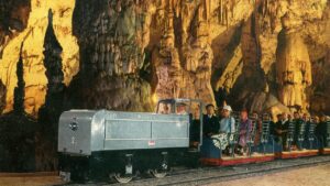 La petita trampa és considerar “metro” al que en realitat és un tren turístic que serveix per circular per la cova de Postojna, una meravella natural plena d’estalactites il·luminades per a goig i contemplació dels visitants. La cova ja era una destinació turística des de molt abans, però la qüestió de la mobilitat no estava resolta. El 1857 visitaren la