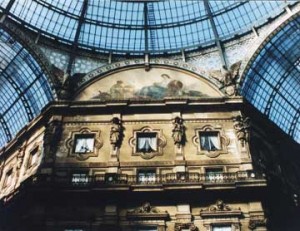 Al costat de la plaça del Duomo s’alcen les famoses galeries Vittorio Emmanuele (a la foto), sempre plenes de gent i amb locals caríssims (un cafè, 3 ?). No hi falta (horror!) un McDonald’s, amb una retolació discreta, això sí: tot el conjunt de les galeries està protegit d’impactes visuals, coloraines i neons.