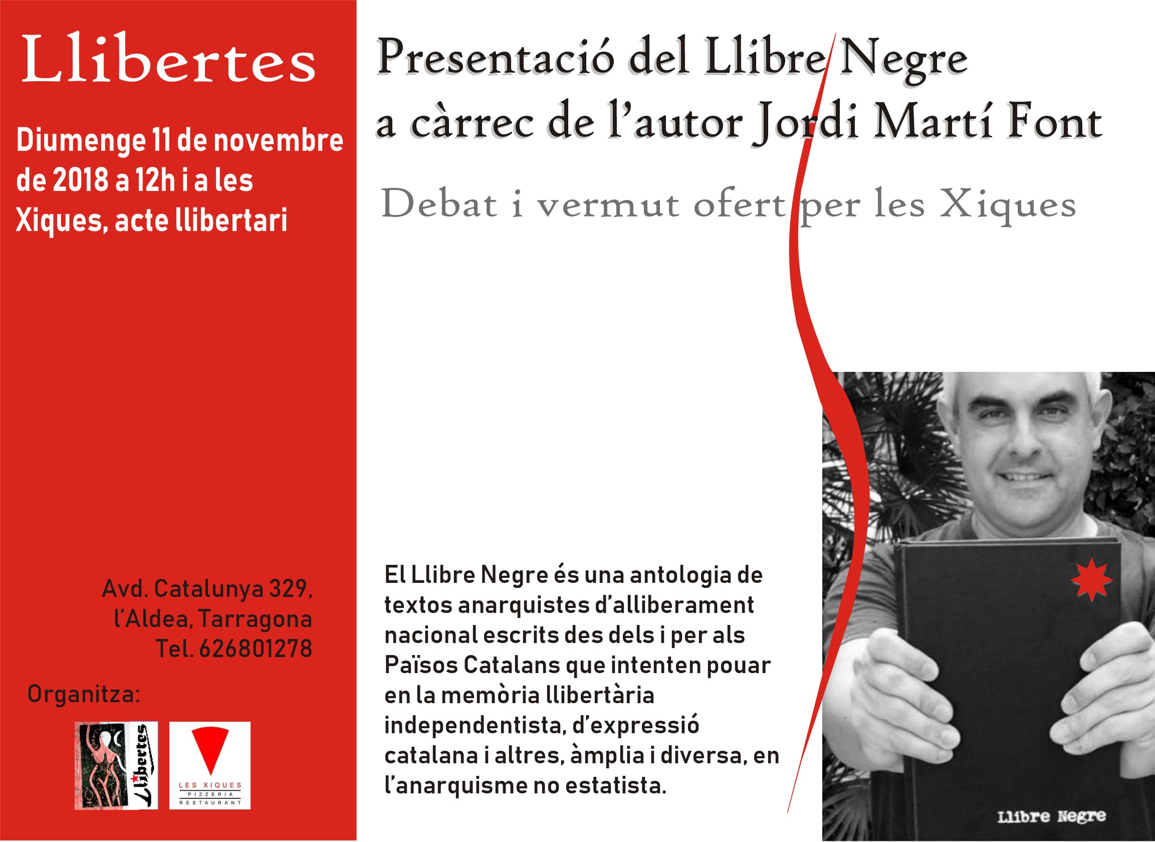 -11 de novembre, diumenge a les 12h, a l’Aldea, a les Xiques (av. Catalunya, 329), organitzat per Llibertes i Les Xiques.