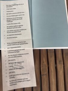 “Em veig obligat a fugir de tot el que estimo i tinc tanta ràbia i tanta pena que ploro amb els ulls ben secs i no em doldria gens morir-me. El Pirineu és ara l’esvoranc del gran esquinç que desfà Catalunya i amb ell la nostra vida. No podria explicar aquesta desolació que ens volta; tots estem una mica malalts per les nits passades al ras en aquestes muntanyes de neus eternes. Hi ha caravanes de ferits mal curats i amb la carn gangrenada, que s’aguanten drets i caminen perquè els sosté l’obsessió de fugir. He vist dones i criatures mortes a la vora dels camins, de misèria, de fred o de cansament, i cares, milers de cares primes, pàl·lides, amb una resta de voluntat a la mirada, la mica de voluntat que ens resta a tots plegats per a seguir caminant.”