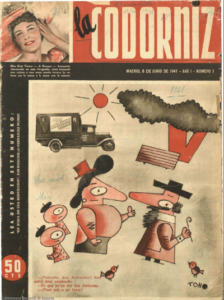 • Dia 8: es publica el primer número de la revista setmanal d’humor “La Codorniz”. El director era Miguel Mihura i va aparèixer regularment -amb canvis de director com Álvaro de la Iglesia i Cándido- fins al desembre de 1978 (1941/85 anys).