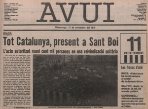 • Dia 11: primera gran manifestació per l’Onze de Setembre a Sant Boi. Hi varen intervenir Octavi Saltor, Jordi Carbonell i Miquel Roca i Junyent (1976/50 anys).
