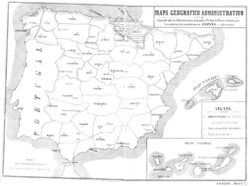 En conseqüència, el 1833 el territori espanyol s’estructura en províncies asèptiques des del punt de vista històric tradicional, sense personalitat específica, delimitades amb un criteri racionalista (que totes estigueren més o menys equilibrades en els seus components: plana i muntanya, terra fèrtil i pobre, comarques ramaderes i agràries, tot amb vista a l’autoabastament), com un simple instrument administratiu de l’Estat centralitzador.