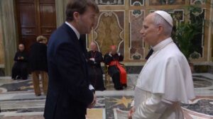 FOTO DE L’APUNT: El Papa Lleó XIV saluda l’Albert Serra (© Vatican Media)