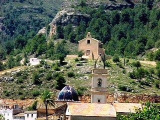El pelegrí camina escoltant la remor del seu company, el riu Xúquer. Els tarongers descendeixen des de les muntanyes fins la ribera en un mar on sobre les aigües maragdes dringuen les daurades taronges. Ell cerca Déu amb la seua mirada i el troba: el singular escalonat cementeri, la senyorial església i a la part alta del turó l’ermita.