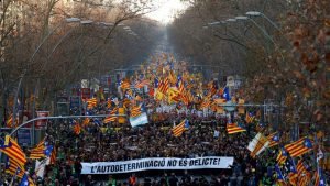 Imagine que després d’aquesta manifestació ja no n’hi haurà cap dubte que existeix un nacionalisme espanyol. Sempre m’han fet gràcia aquells que insisteixen a dir que no són nacionalistes, ara bé quan segons ells la sacrosanta “unidad de España” està en perill, són els primers que s’embolcallen amb la bandera per eixir al carrer i exigir noves eleccions i mà dura contra Catalunya, pressionar els jutges, titllar a Sánchez de traïdor i atiar l’odi i l’anticatalanisme. Aquells que coneixem una mica la història del Regne d’Espanya, ens fa l’efecte que aquest estat viu, des de fa anys i panys, en el dia de la marmota. Entre, com diria Antonio Machado, “una España que muere y otra España que bosteza, i que tard o d’hora “una de las dos ha de helarte el corazón”. Sí, efectivament, ens gela el cor veure com aquesta obsessió malaltissa perdura en el temps. L’any 1938 l’ambaixador espanyol José Antonio Giménez Arnau deia: “Pero una advertencia. Ya se acabó esta conducta, se acabó la traición, porque nosotros preferiríamos ver a estas tierras pulverizadas antes que verlas otra vez en contra de los sagrados destinos de España”. Mireu, vuitanta-un anys després i com si res hagués canviat, a la Plaça Colom de Madrid se sentiren missatges molt semblants al de l’esmentat diplomàtic : “No estamos dispuestos a tolerar más traiciones ni concesiones frente a aquellos que quieren destruir nuestra patria. Estamos aquí para decir alto y claro que la unidad nacional no se negocia […]Hay que sufocar el independentismo , si hace falta con más detencions y hasta las últimas consecuencias”. Però és que, a més a més, també poguérem veure pancartes que són una autèntica burla a la intel·ligència: “Unidad de España: Ni se negocia. Ni se discute. Ni se dialoga. Se defiende hasta las últimas consecuencias”.