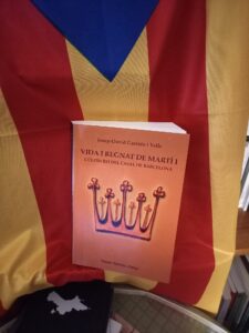 Enguany vaig llegir la biografia del Comte Ramon Berenguer IV que havia escrit l’escriptor Josep-David Garrido i a la visita que vaig fer aquest estiu al monestir de Santes Creus vaig comprar una altra de les seues biografies, la del rei Martí l’humà, el darrer rei del casal de Barcelona abans del Compromís de Casp. Després de llegir-la i haver escoltat a tanta gent parlar d’una sèrie de televisió que fa anys es va fer famosa (i que no he vist mai) que es deia Joc de trons, crec que aquests de la sèrie són un simples aficionats al costat de tot el que es movia al voltant de la Cort del Joan el Caçador, Martí l’humà i les cases nobiliàries d’Aragó, València i Catalunya. Entramats d’interessos que per desgràcia nostra esclataren a Casp, on el “estimadíssim” per alguns Vicent Ferrer (i el Papa de Peníscola) va tenir un galdós paper en la meua opinió, donant la corona als Trastàmara.