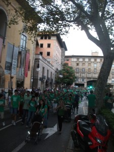 A les 19h la primera onada de persones arribàvem a lloc. S’ha llegit el manifest 40 vegades. De noranta mil a cent mil persones hem omplert la ciutat de tots els colors del verd, de la dignitat i de l’esperança. Les darreres arribàven a les 20,30h. Un drac de color i festa, un drac estimat, ha creuat Ciutat i sortirà sempre que calgui, verd i or i flama